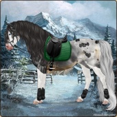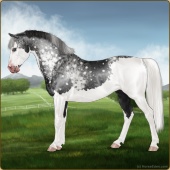 Name: Mirac X Golde 191Age: 11 Mare Color: Black Splash White Varnish Appaloosa Breed: Sport Pony Foal Rating: E/W/E |  |