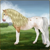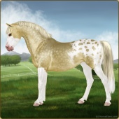 Name: MiraculousAge: 15 Mare Color: Gold Champagne Varnish Appaloosa Breed: Sport Pony Foal Rating: E/W/W |  |