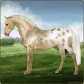 Name: Mirac X NiaEW 195Age: 7 Gelding Color: Pale Palomino Splash White Blanket Appaloosa Breed: Sport Pony Foal Rating: E/E/E |  |