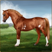 Name: Solar Arc GHCAge: 3 Stallion Color: Chestnut Near Leopard Appaloosa Breed: Sport Pony Foal Rating: E/W/E Bravery Rating: Sub-Par For Breeding! |  |