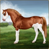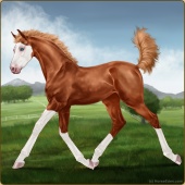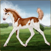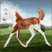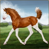 Name: ᶒβ Chess EWWAge: 2 Mare Color: Chestnut Splash White Breed: Sport Pony Foal Rating: E/W/W |  |