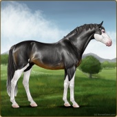 Name: Miracle MindAge: 6 Mare Color: Black Splash White Breed: Sport Horse Foal Rating: E/E/W |  |