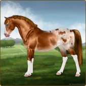 Name: Mirac X NekoW 194Age: 8 Gelding Color: Chestnut Splash White Varnish Appaloosa Breed: Sport Pony Foal Rating: E/E/E |  |