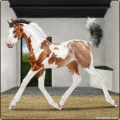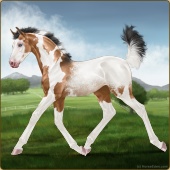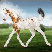 Name: ℘ Glitter HurricaneAge: 2 Mare Color: Mahogany Bay Tobiano Sabino Frame Varnish Frost Appaloosa Breed: Sport Horse Foal Rating: P/P/P |  |