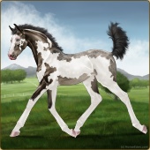 Name: WRR Burnt PieAge: 2 Mare Color: Black Sabino Frame Breed: Sport Horse Foal Rating: P/E/W Bravery Rating: Sub-Par |  |