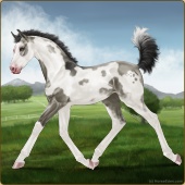 Name: (HS) Scorpion Inside -PEE-Age: 4 Stallion Color: Silver Black Tobiano Sabino Rabicano Frame Varnish Appaloosa Breed: Irish Sport Horse Foal Rating: P/E/E |  |
