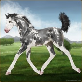 Name: War Criminal PPEAge: 2 Stallion Color: Black Sabino Rabicano Frame Varnish Snowflake Appaloosa Breed: Sport Horse Foal Rating: P/P/E |  |