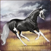 Name: ♤Midnight Man EEEAge: 9 Stallion Color: Black Tobiano Sabino Breed: Irish Sport Horse Foal Rating: E/E/E |  |