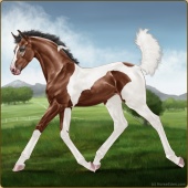 Name: CHMid X Shiki 199Age: 2 Mare Color: Light Bay Tobiano Breed: Anglo Arabian Foal Rating: E/E/E |  |