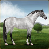 Name: RW Twilight Time EEEAge: 8 Mare Color: Silver Black Sabino Breed: Irish Sport Horse Foal Rating: E/E/E |  |