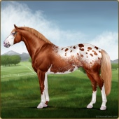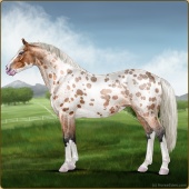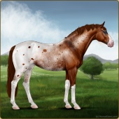 Name: NEW Member 2 EEEAge: 6 Stallion Color: Flaxen Red Roan Splash White Varnish Blanket Appaloosa Breed: Irish Sport Horse Foal Rating: E/E/E |  |
