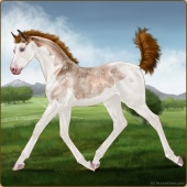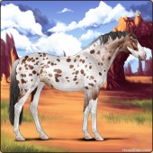 Name: SSE Goddess-LikeAge: 2 Mare Color: Copper Bay Sabino Appaloosa Breed: Sport Horse Foal Rating: E/E/W Bravery Rating: Sub-Par |  |