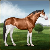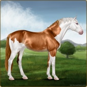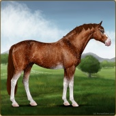 Name: WBHya X Arawn 194Age: 3 Stallion Color: Liver Chestnut Tobiano Breed: Sport Horse Foal Rating: E/E/E |  |