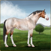 Name: BRS Ivory [WEE]Age: 10 Mare Color: Flaxen Red Roan Dun Sabino Breed: Sport Horse Foal Rating: W/E/E |  |