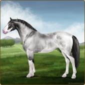 Name: (EWW) newAge: 9 Stallion Color: Blue Roan Splash White Breed: Sport Horse Foal Rating: E/W/W |  |