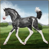 Name: Firet X Onilr 187Age: 0 Mare Color: Smokey Black Tobiano Splash White Sabino Breed: Warmblood Foal Rating: S/P/S |  |
