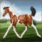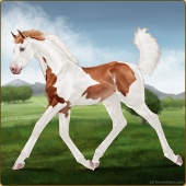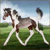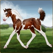 Name: Firet X Onilr 189Age: 0 Mare Color: Chestnut Tobiano Splash White Sabino Breed: Warmblood Foal Rating: S/P/S |  |