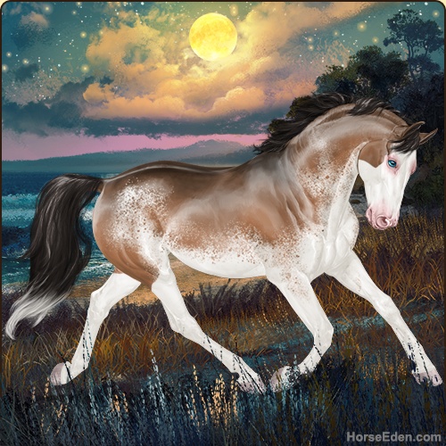Color: Light Bay Dun Splash White Sabino