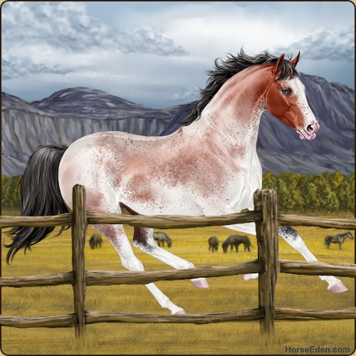 Color: Blood Bay Roan Sabino
