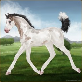 Name: foal 38130600Age: 6 Mare Color: Silver Roan Splash White Frame Breed: Sport Horse Foal Rating: P/P/P |  |