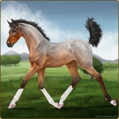 Name: Prett X ambNe EEEAge: 11 Mare Color: Light Bay Roan Dun Sabino Breed: Irish Sport Horse Foal Rating: E/E/E |  |