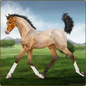 Name: ଯ Sweet n LowAge: 9 Gelding Color: Buckskin Roan Splash White Breed: Irish Sport Horse Foal Rating: P/E/E |  |