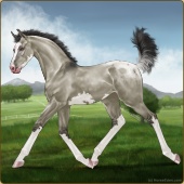 Name: Frosting BrookAge: 10 Mare Color: Smokey Roan Grullo Pearl Sabino Blanket Appaloosa Breed: Irish Sport Horse Foal Rating: P/P/P Bravery Rating: Sub-Par |  |