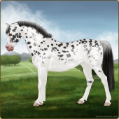 Name: Rising Angel (EEE)Age: 9 Mare Color: Black Sabino Near Leopard Appaloosa Breed: Sport Pony Foal Rating: E/E/E For Breeding! |  |