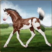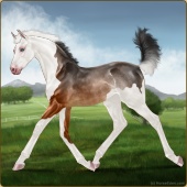 Name: foal 3377182Age: 1 Filly Color: Mahogany Bay Splash White Frame Varnish Appaloosa Breed: Irish Sport Horse Foal Rating: P/E/P |  |