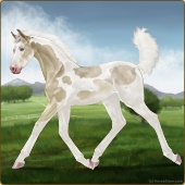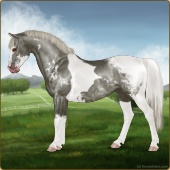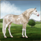 Name: Hades X Hades 196Age: 2 Stallion Color: Perlino Tobiano Sabino Frost Appaloosa Breed: Sport Pony Foal Rating: E/E/E |  |
