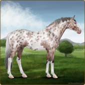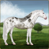 Name: Hades X DSAst 192Age: 6 Mare Color: Silver Smokey Black Sabino Frame Snowflake Appaloosa Breed: Sport Horse Foal Rating: P/E/P |  |