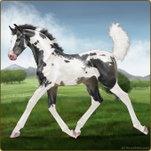 Name: Hades X NikeW 196Age: 2 Mare Color: Silver Light Bay Splash White Sabino Varnish Appaloosa Breed: Sport Horse Foal Rating: E/E/E |  |