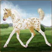 Name: Hades X Hades 196Age: 2 Mare Color: Palomino Tobiano Sabino Near Leopard Appaloosa Breed: Sport Horse Foal Rating: P/E/E |  |