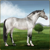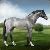 Name: 42888832Age: 4 Stallion Color: Silver Roan Grullo Splash White Breed: Sport Horse Foal Rating: E/W/E |  |