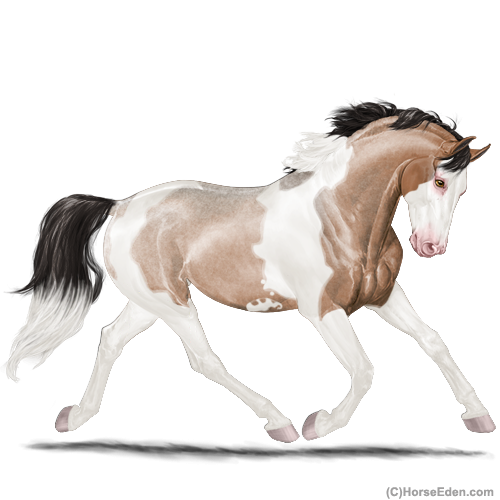 Color: Light Bay Roan Dun Tobiano Splash White Sabino