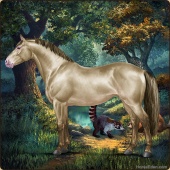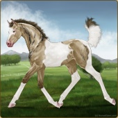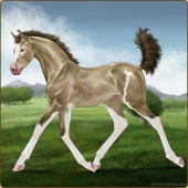 Name: Cabriose [ChChToSpl]Age: 4 Stallion Color: Sable Champagne Tobiano Splash White Breed: Irish Draught Horse Foal Rating: P/E/E |  |