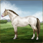 Name: ChChB X WFREt [ChCh]Age: 9 Stallion Color: Amber Champagne Roan Splash White Breed: Irish Sport Horse Foal Rating: P/P/P |  |