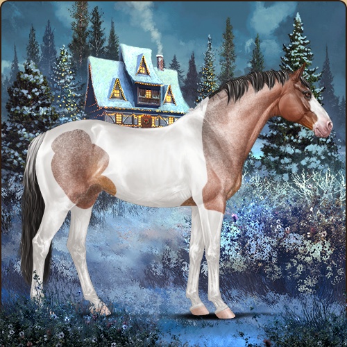 Color: Blood Bay Roan Dun Tobiano Sabino