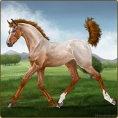 Name: 𝜢 Heaven's CanvasAge: 9 Mare Color: Chestnut Sabino Varnish Blanket Appaloosa Breed: Sport Horse Foal Rating: E/W/E Bravery Rating: Sub-Par |  |