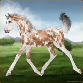 Name: Picaz X ESLet 197Age: 4 Mare Color: Chestnut Sabino Varnish Blanket Appaloosa Breed: Irish Sport Horse Foal Rating: W/E/E |  |