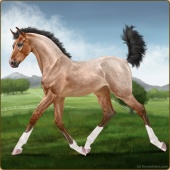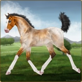 Name: 42256818PEEAge: 5 Gelding Color: Buckskin Splash White Sabino Breed: Irish Sport Horse Foal Rating: P/E/E Bravery Rating: Sub-Par |  |