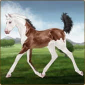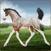 Name: Tornado | EEEAge: 3 Gelding Color: Light Bay Roan Splash White Breed: Sport Horse Foal Rating: E/E/E Bravery Rating: Sub-Par |  |