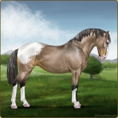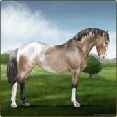 Name: Dream X GoAce 200Age: 2 Stallion Color: Brown Dunskin Near Leopard Appaloosa Breed: Knabstrupper Foal Rating: W/Sub/Sub |  |