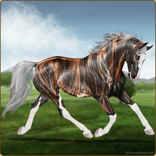 Color: Silver Black Sabino BrindleHorse Nbr: 40231201Breed: WarmbloodSex: MareBirthdate: February 4, 2025Age: 11Birth Year: 187Height: 17.1 Hands
