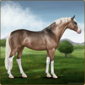 Name: 42669110Age: 5 Mare Color: Silver Mahogany Bay Dun Splash White Breed: Sport Horse Foal Rating: P/P/P |  |