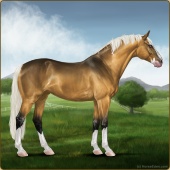 Name: 41897833Age: 8 Mare Color: Red Dun Splash White Breed: Sport Horse Foal Rating: P/E/P |  |