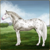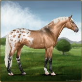 Name: foal 63473362Age: 9 Mare Color: Dunalino Splash White Sabino Rabicano Varnish Frost Appaloosa Breed: Sport Horse Foal Rating: E/E/E |  |