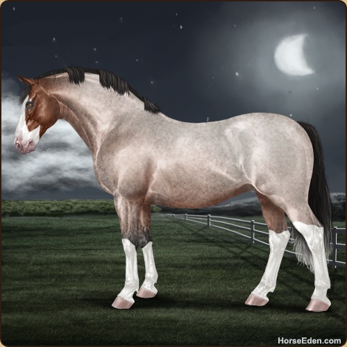 Color: Mahogany Bay Roan Splash White