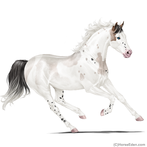 Color: Mahogany Bay Roan Dun Tobiano Splash White Sabino