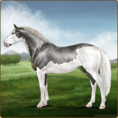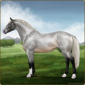 Name: Everglade CherebumAge: 13 Stallion Color: Silver Smokey Roan Varnish Blanket Appaloosa Breed: Irish Sport Horse Foal Rating: E/E/E |  |
